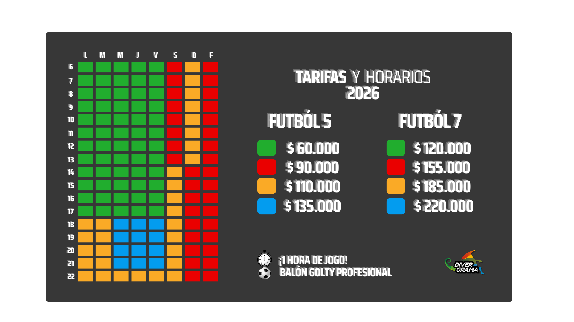 En Divergrama te ofrecemos canchas de alto nivel, ambiente seguro y espacios ideales para el desarrollo deportivo de tus jugadores.